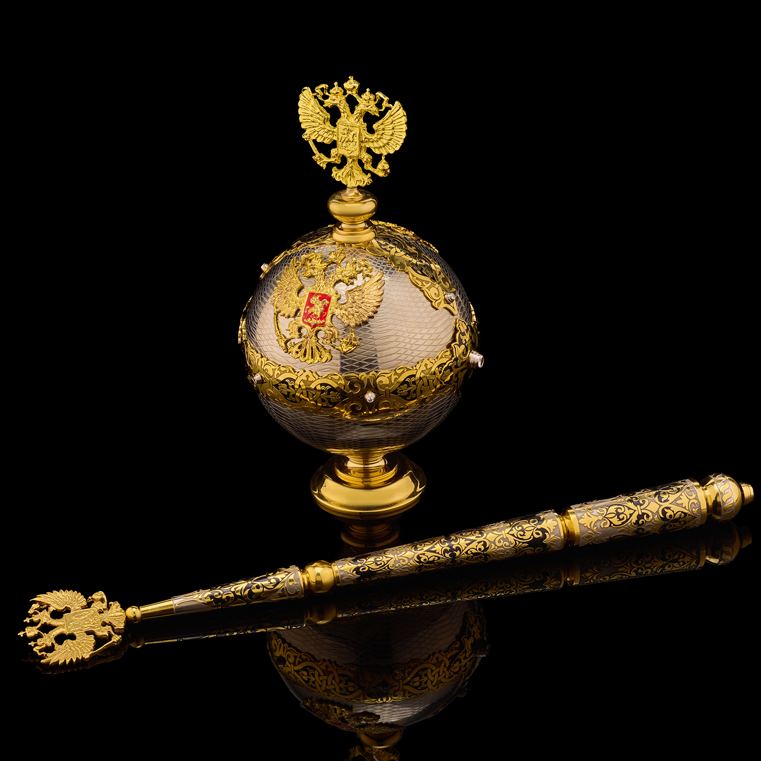 Скипетр и держава с позолотой и фианитами. Златоуст.Материалы: латунь, никель, золото 999,9*, эмаль, фианиты.
