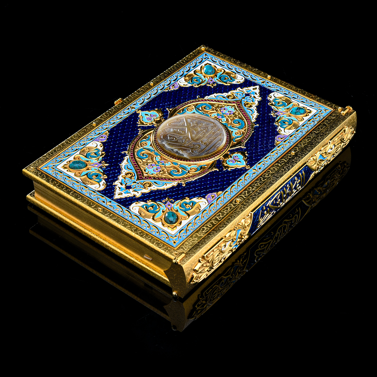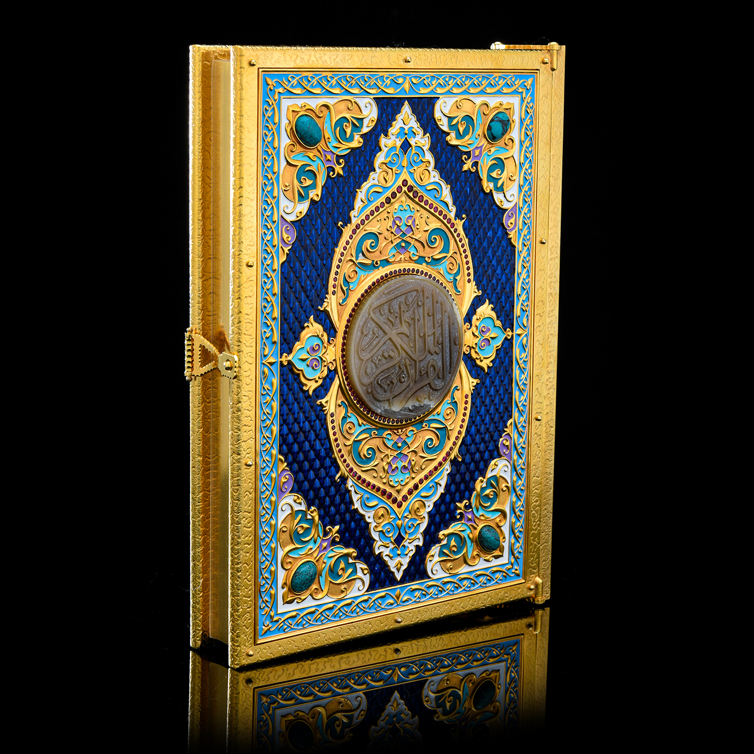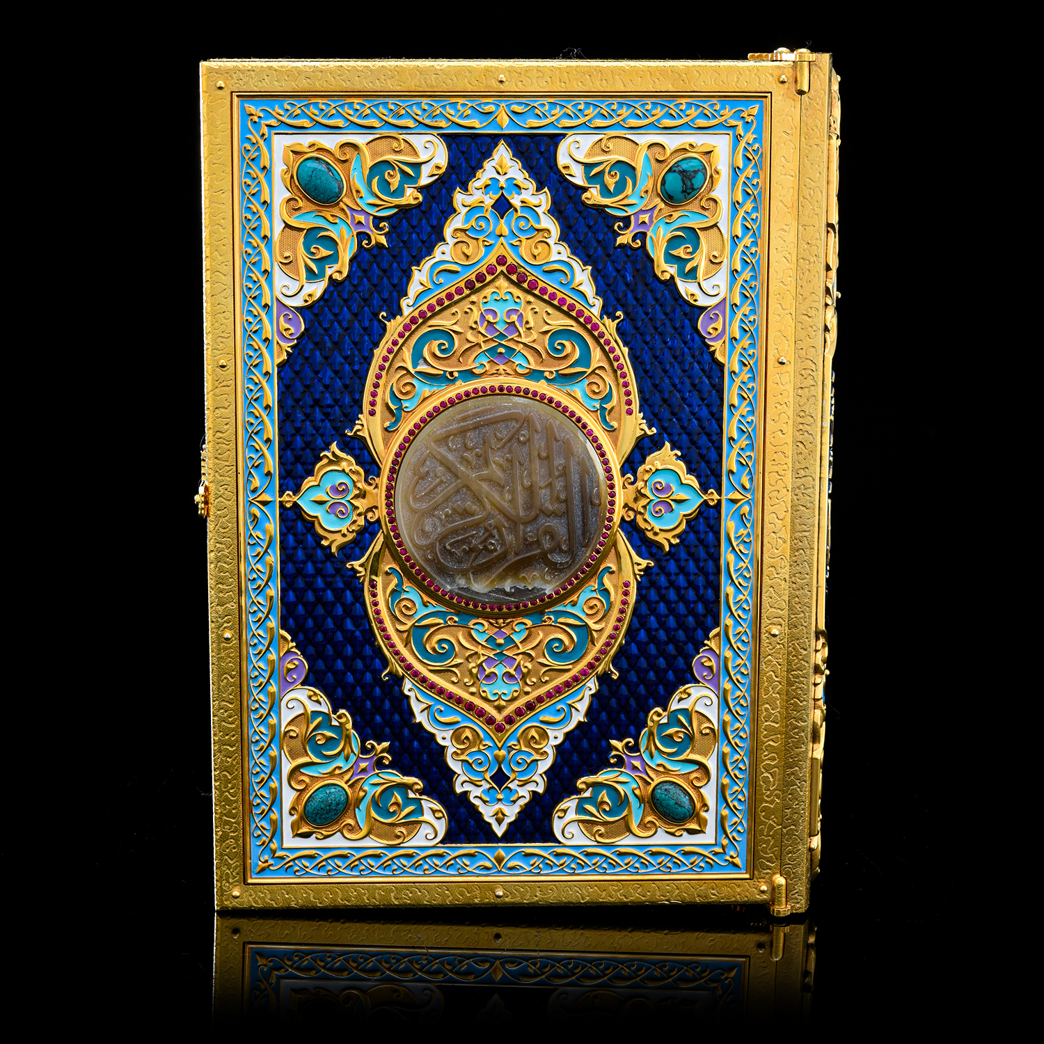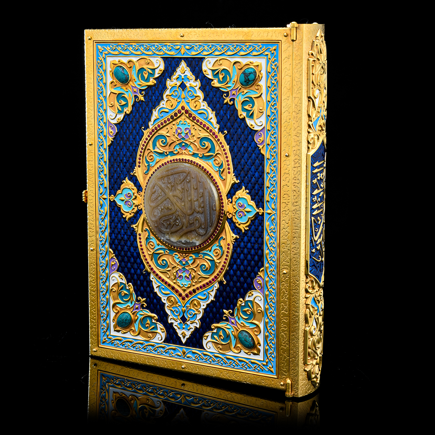 Подарочная религиозная книга "Коран". Златоуст.Материалы: латунь, никель, золото 999,9*, эмаль, нефрит, бирюза.