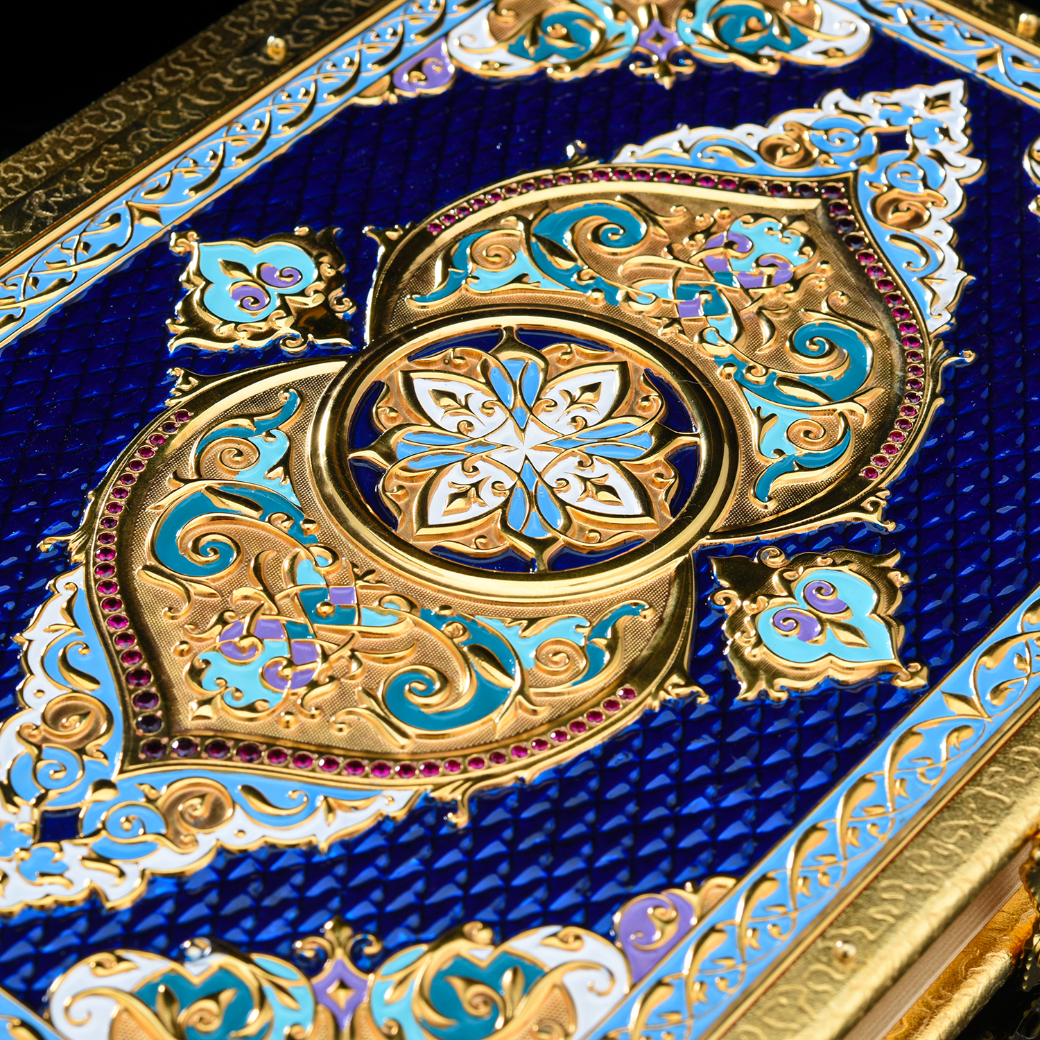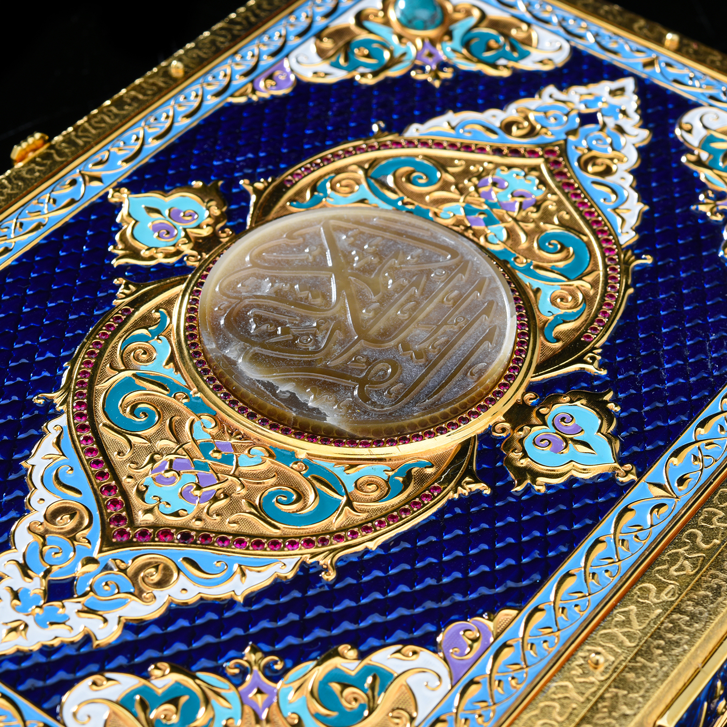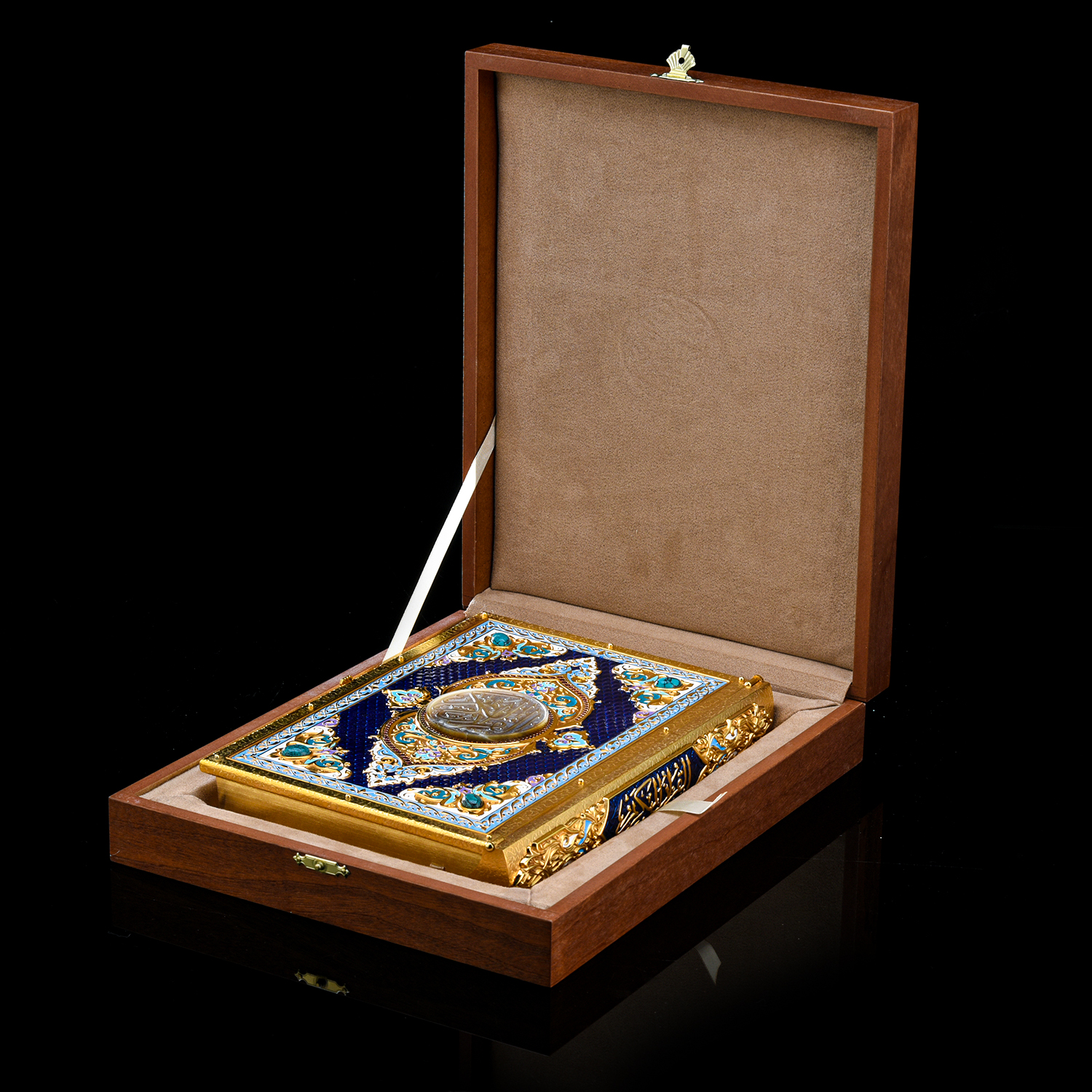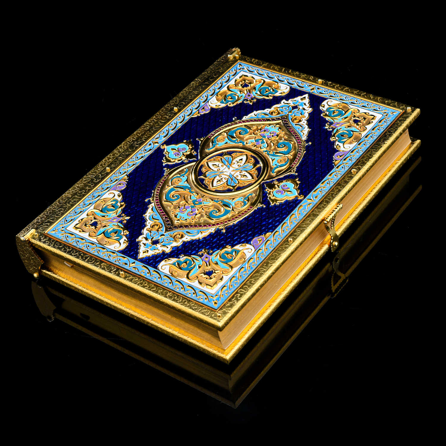 Подарочная религиозная книга "Коран". Златоуст.Материалы: латунь, никель, золото 999,9*, эмаль, нефрит, бирюза.
