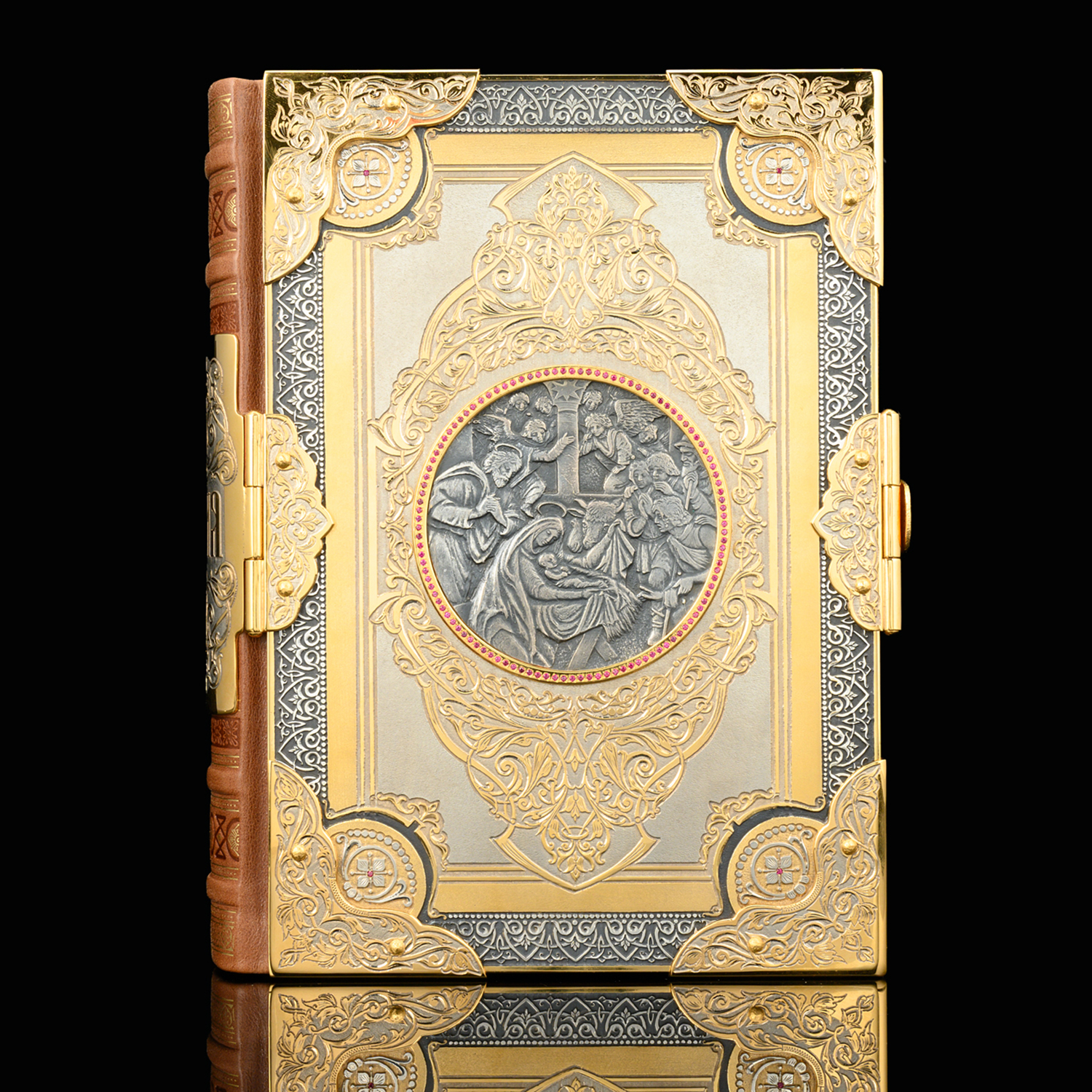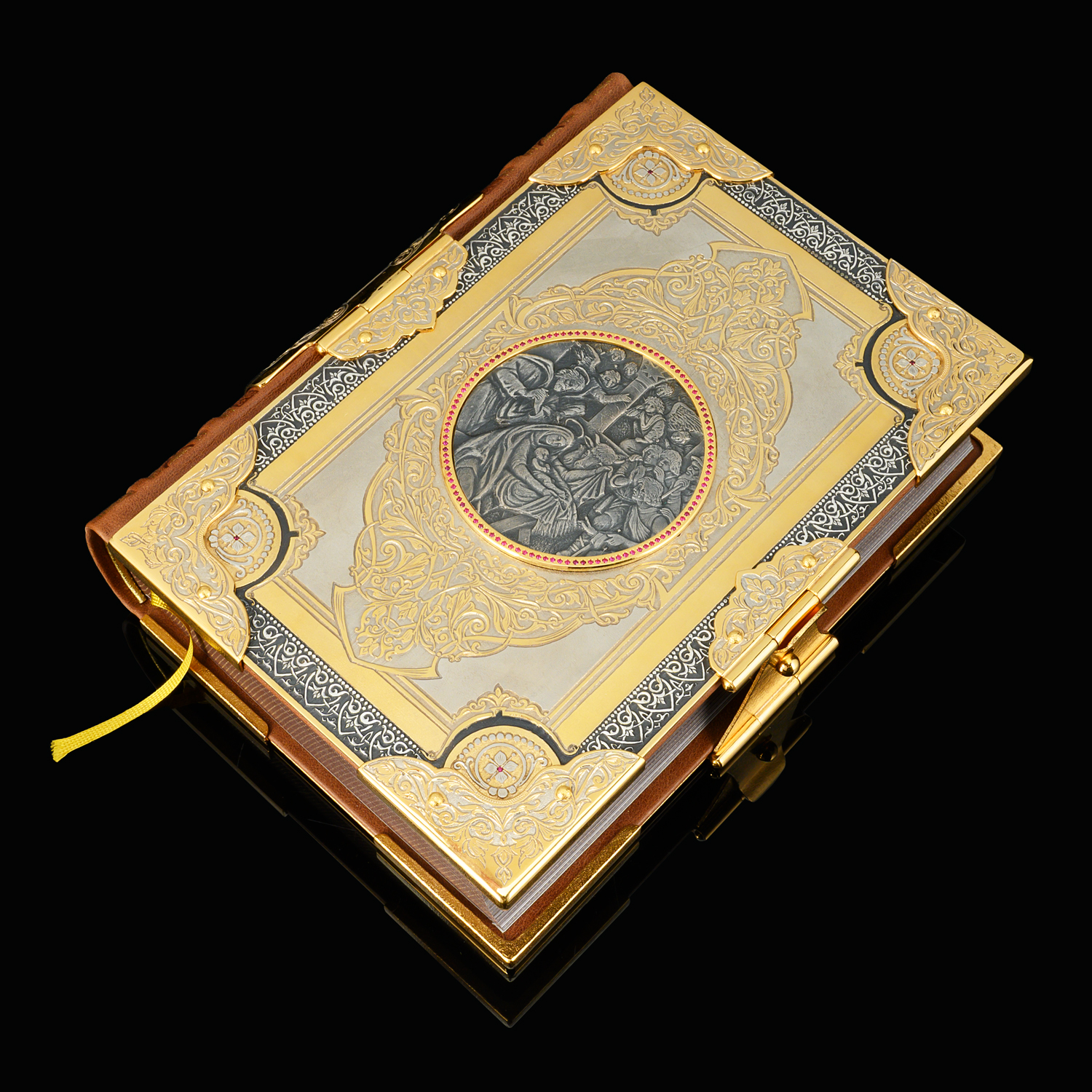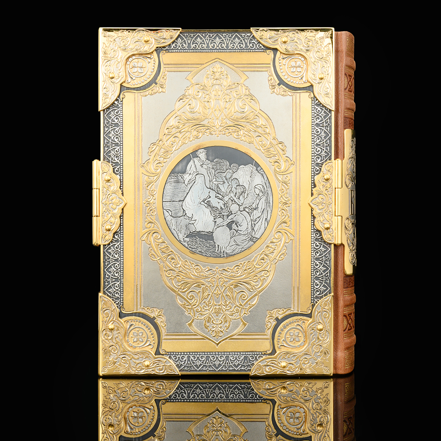Подарочная религиозная книга "Библия". Златоуст.Материалы: латунь, никель, золото 999,9*, фианиты, кожа.
