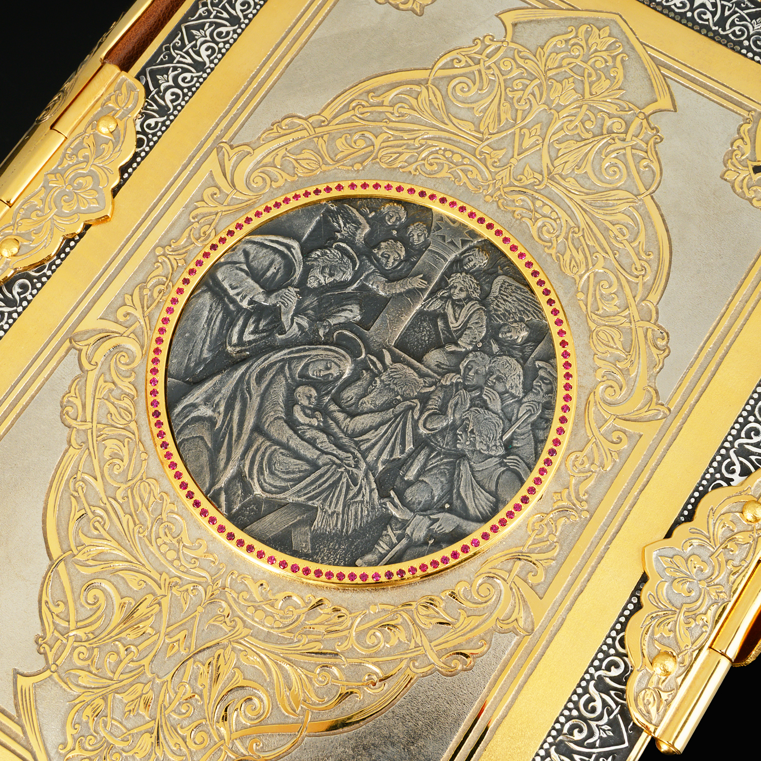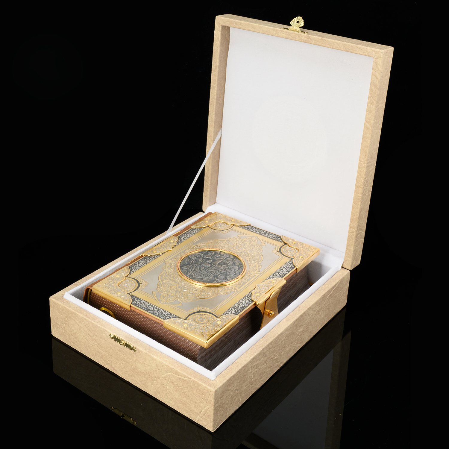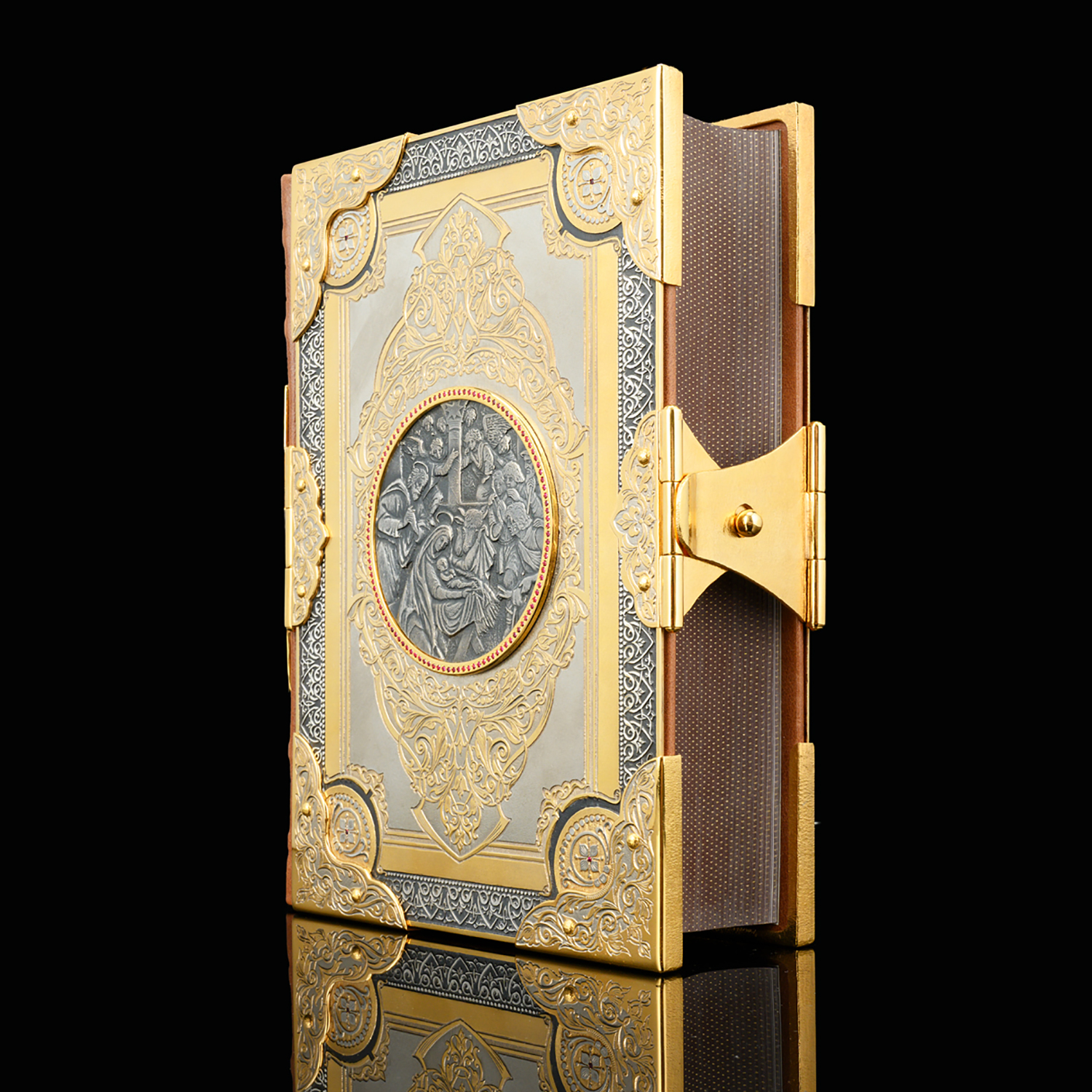 Подарочная религиозная книга "Библия". Златоуст.Материалы: латунь, никель, золото 999,9*, фианиты, кожа.