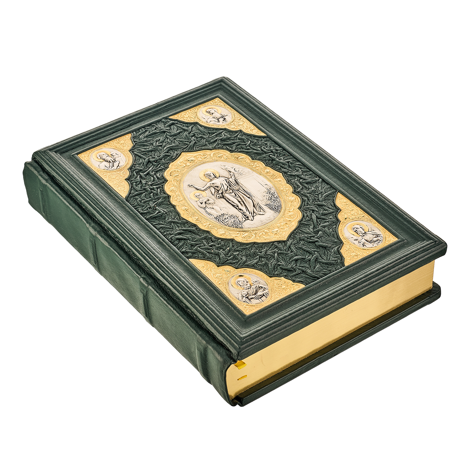 Подарочная религиозная книга "Библия".Материалы: кожа, металл, золочение, серебрение, бумага.