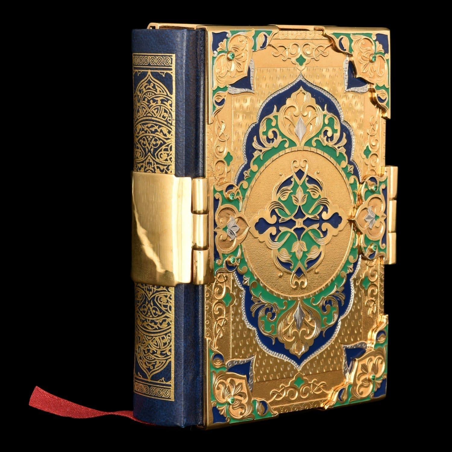 Коран («чтение вслух», «назидание»), священная книга мусульман на арабском языке, объединяет откровения, посланные Аллахом Мухаммеду свыше. На Коран опираются социальные, экономические, политические, юридические и семейные отношения мусульман. Книга включает 500 страниц, 114 глав (сур), преимущественно, в рифмованной прозе. Откровения Аллаха передавались пророку Мухаммеду в 610-632 годах. Около 14 столетий в исламских странах из Корана рождаются правовые акты. Долгое время Коран запрещалось переводить на другие языки, поэтому он переписывался на пальмовых листьях, пергаменте, плоских костях, глиняных табличках. Знающих наизусть Книгу называли хафизами. Коран служит мусульманам путеводителем, религиозно-философским и историко-литературным произведением, законодательной книгой, сводом правил жизни на основе преданий, мифов, легенд арабских племен. Эксклюзивная работа мастеров Златоуста. Материал: бумага, полиграфия, латунь, золочение, серебрение, фианиты. Формат: 28x20 смю Техника исполнения: токарные работы, рисовка кистью, гравировка иглой по лаку, травление, гравировка резцом, полировка, никелирование. В изделии использовались традиционные методы обработки и украшения Златоустовской гравюры на металле. ....Извините, товар отсутствует