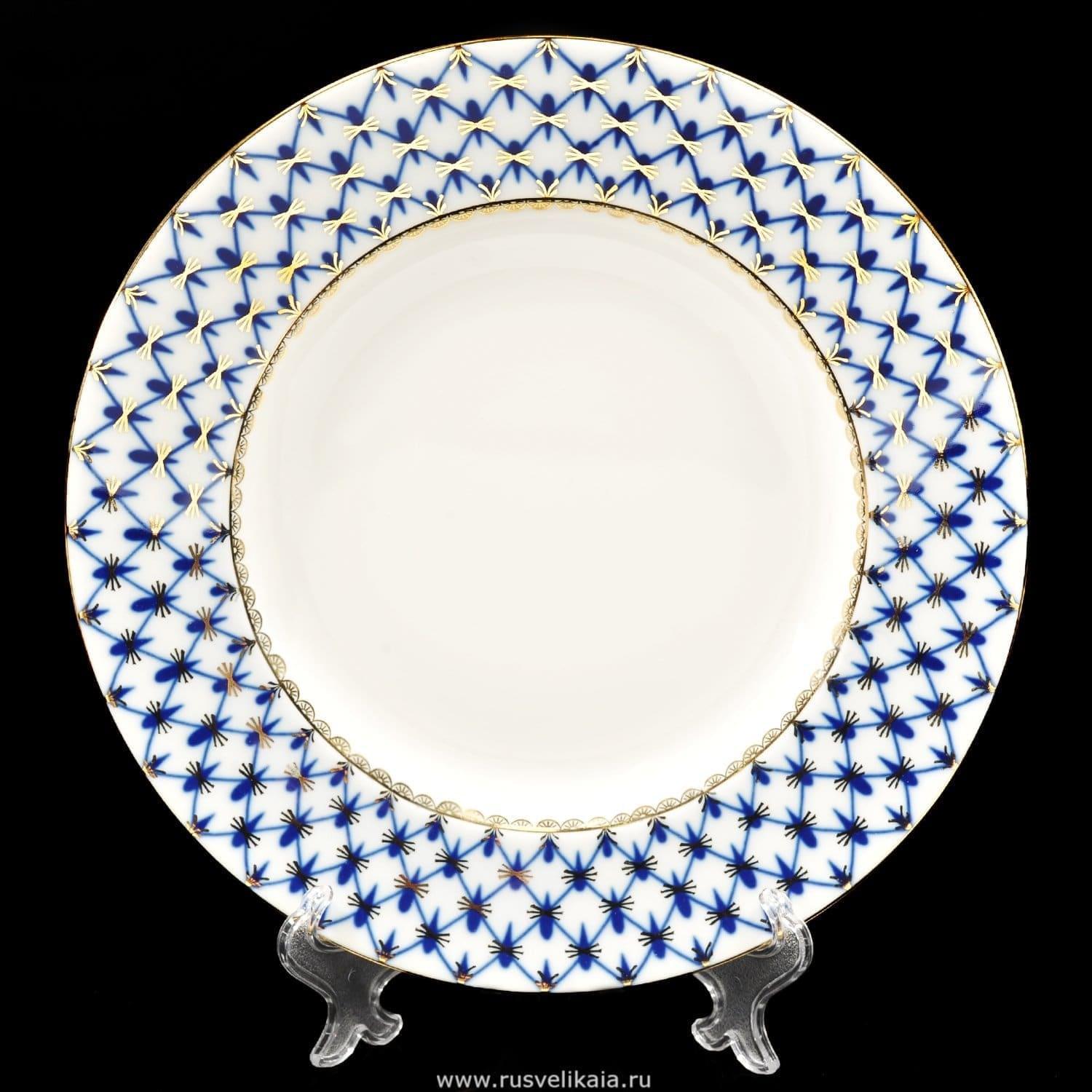 Русские подарки и сувениры → Посуда → Тарелки → Тарелка мелкая "Кобальтовая сетка" (форма "Плоская") ЛФЗ
