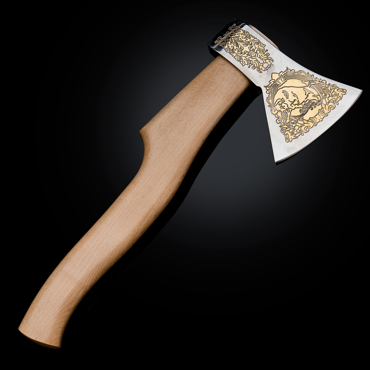Топорик сувенирный "Бык". Златоуст.Материалы: сталь, золото 999,9*, дерево.