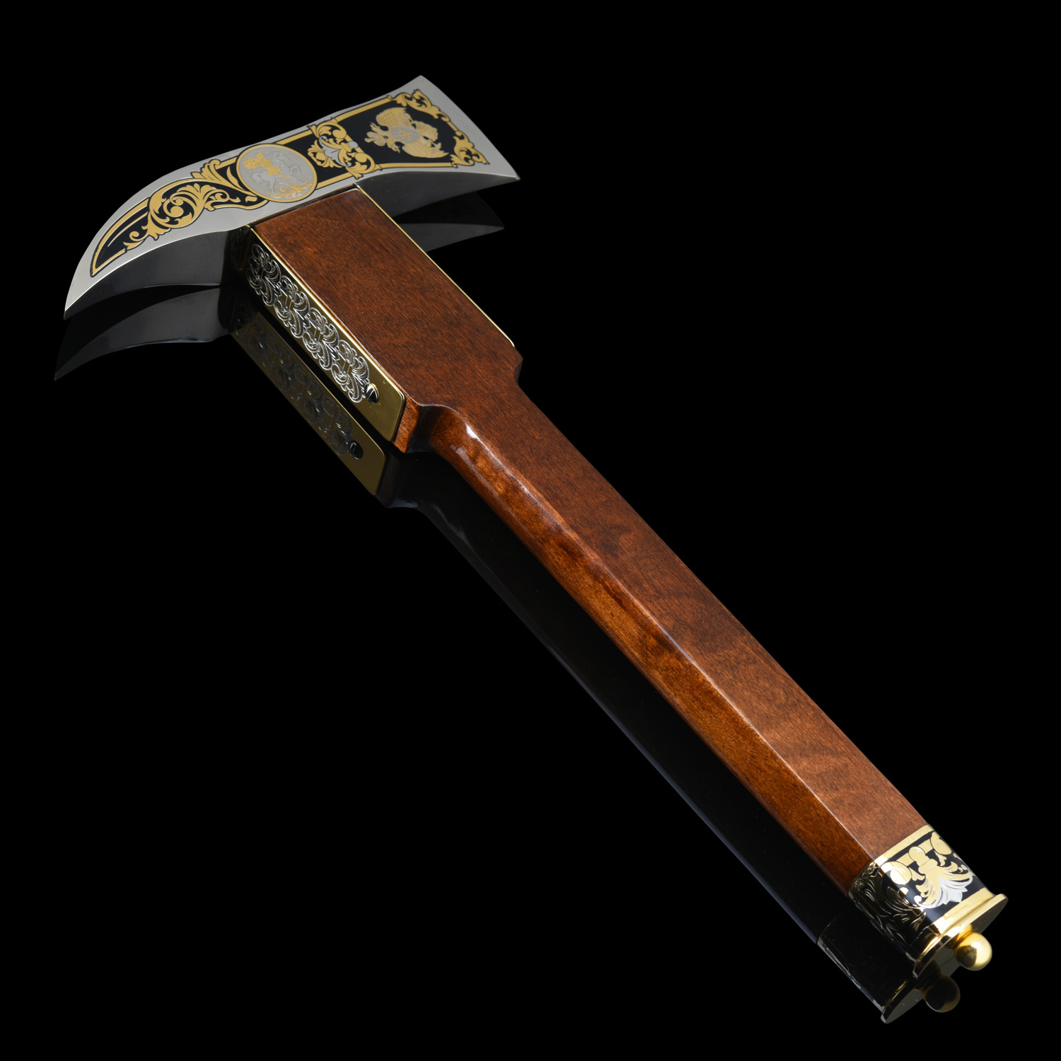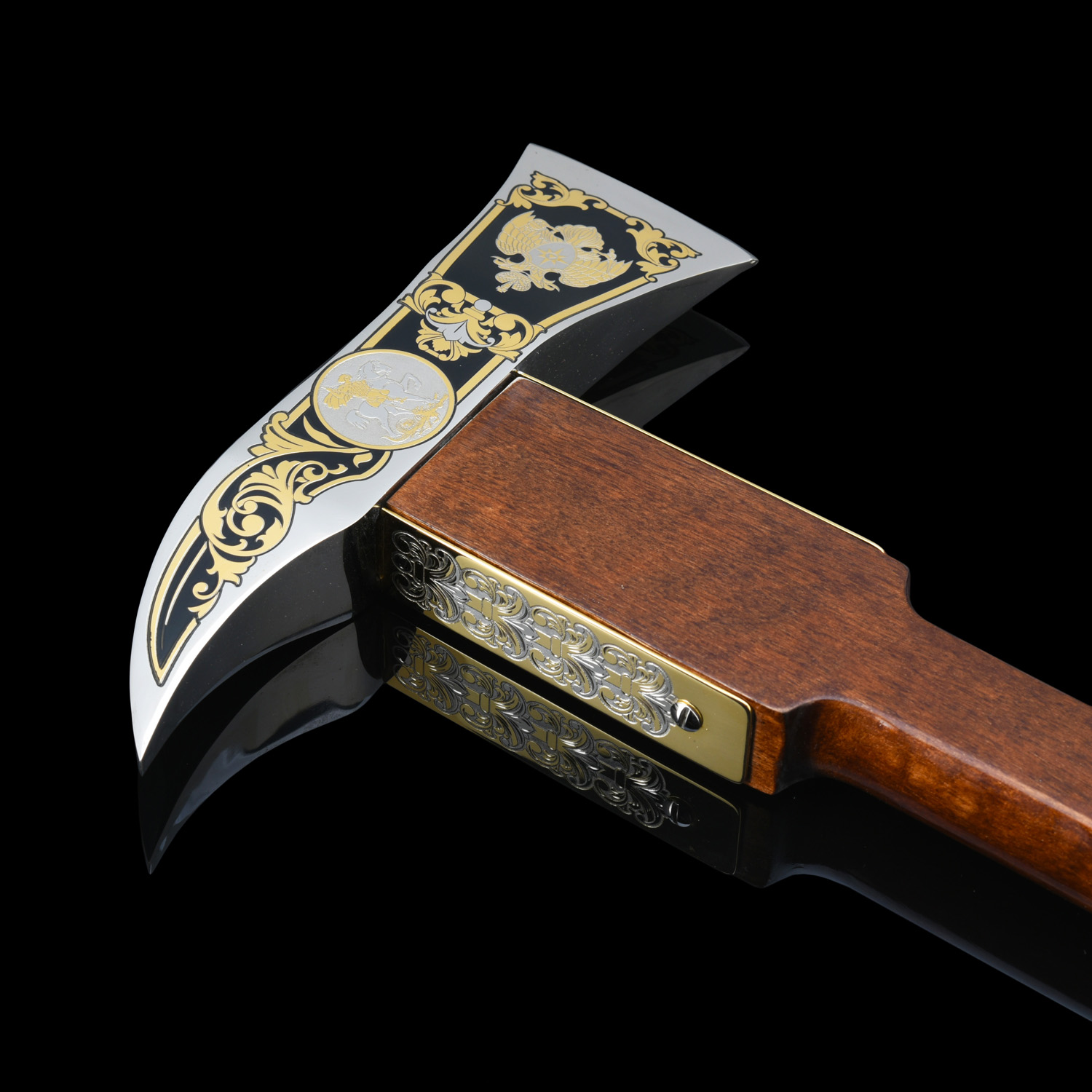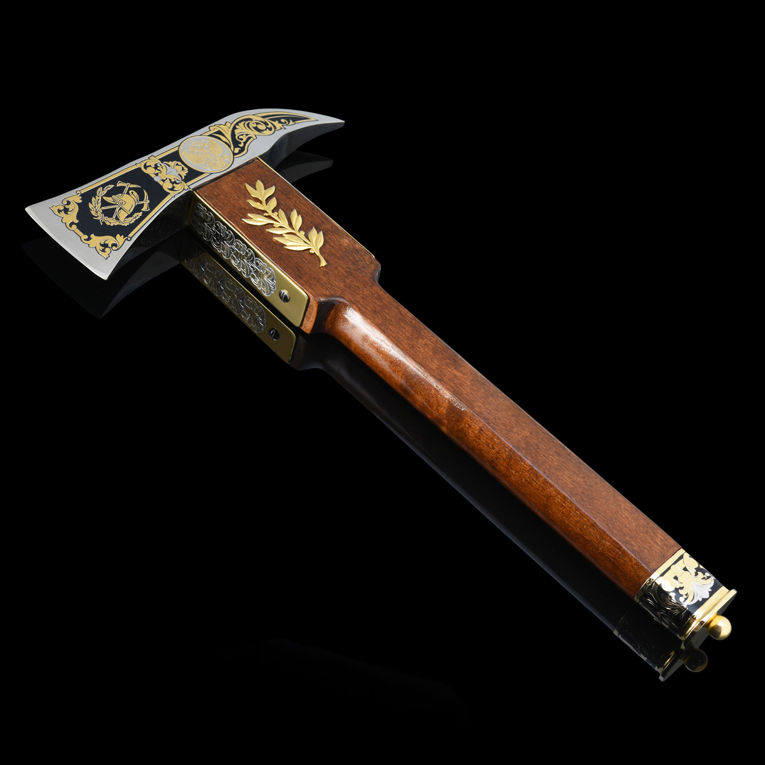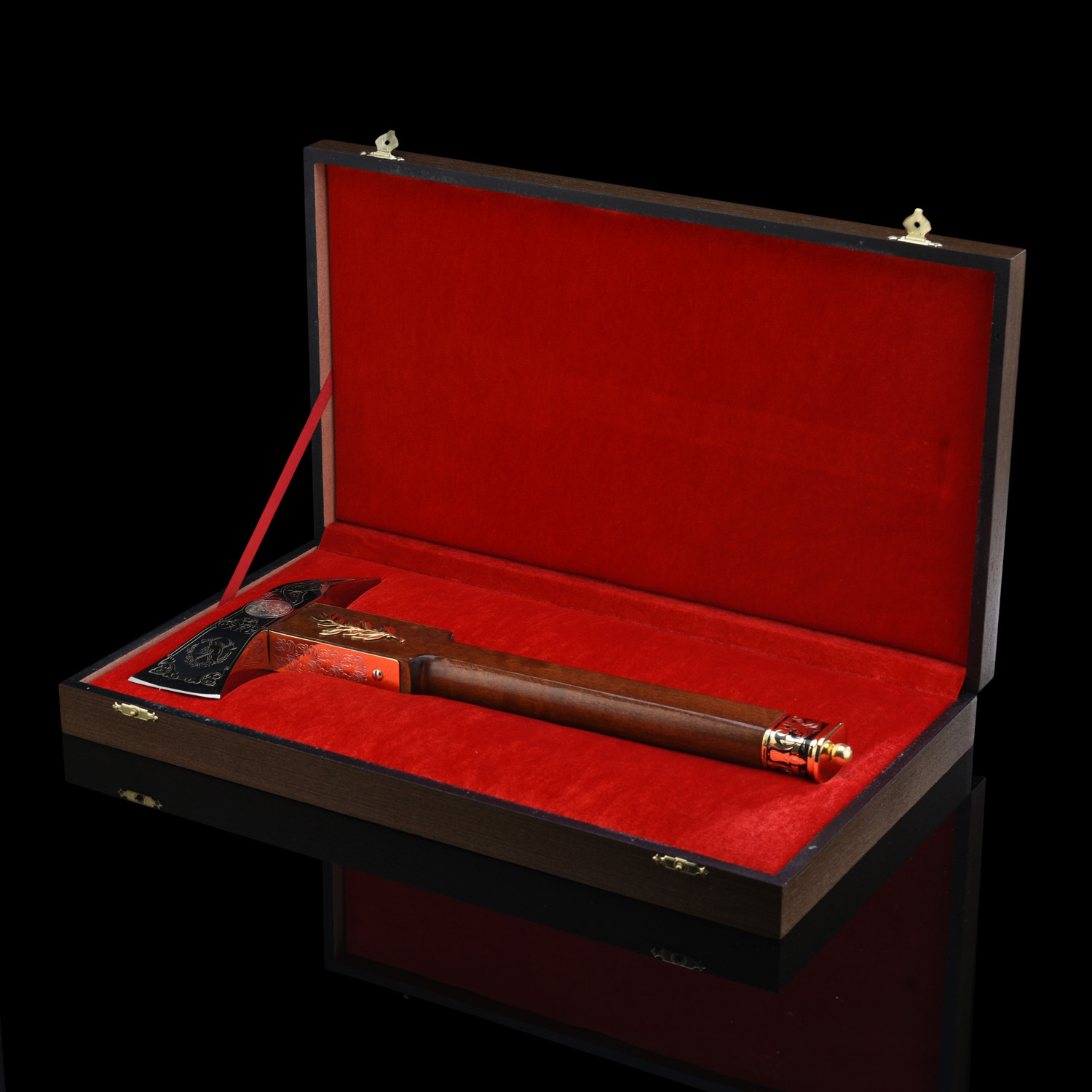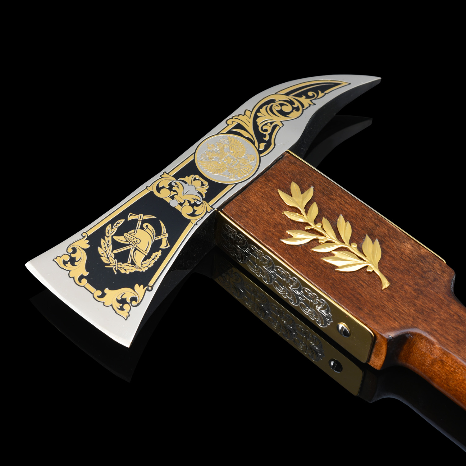 Топор пожарный. Златоуст.Материалы: сталь, латунь, никель, золото 999,9*, эмаль, дерево.