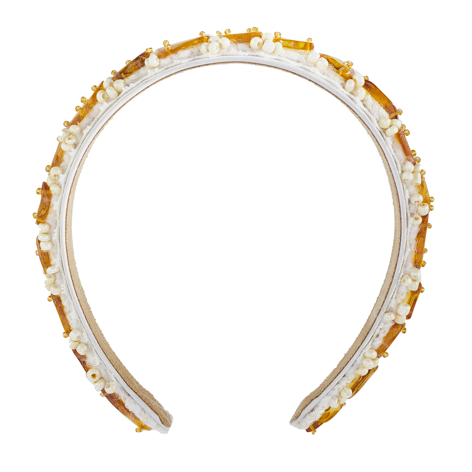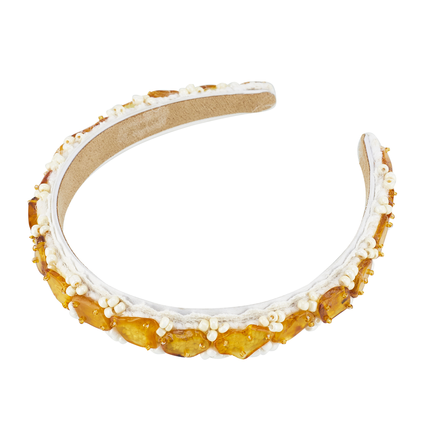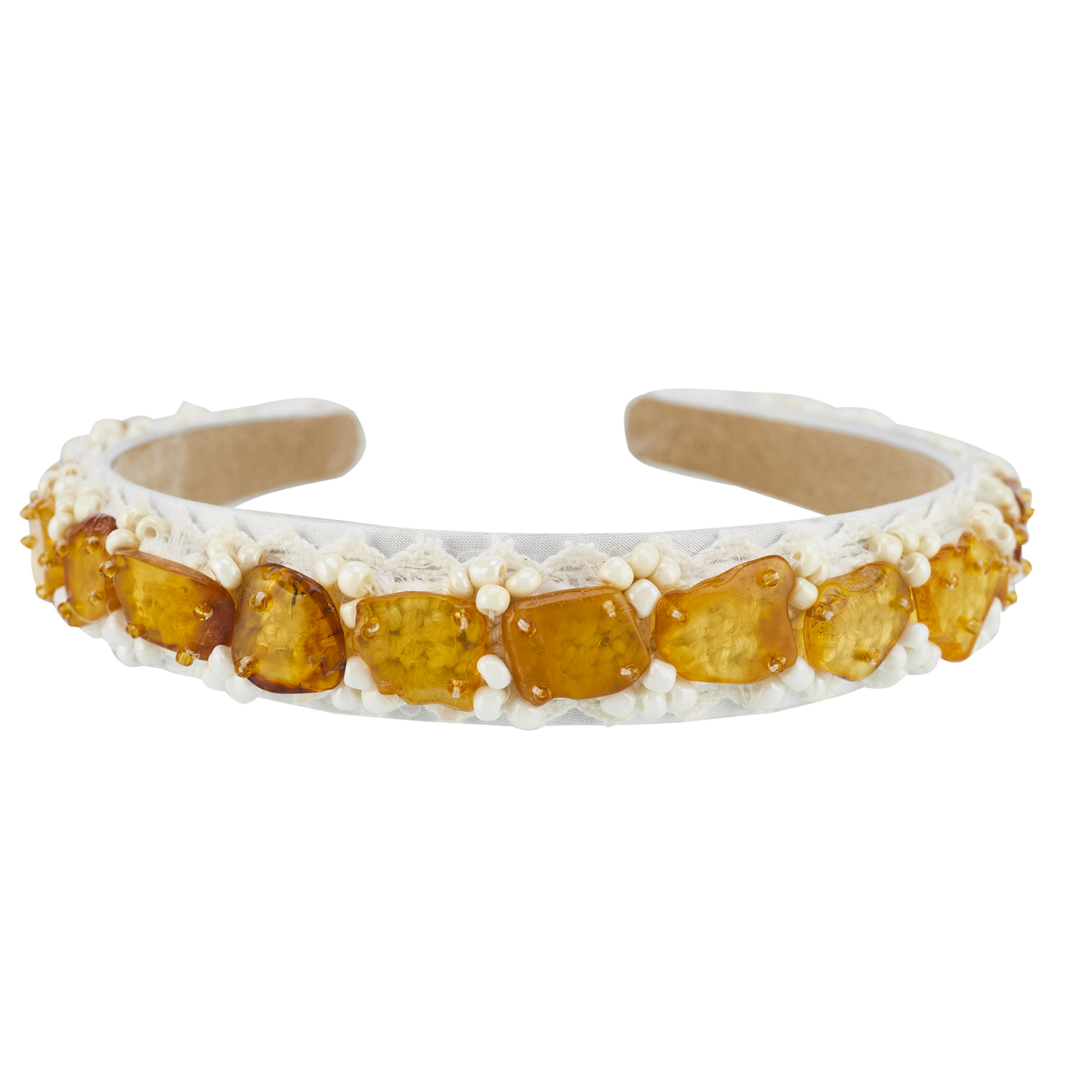 Ободок со вставками из янтаря.Материалы: пластик, текстиль, янтарь.