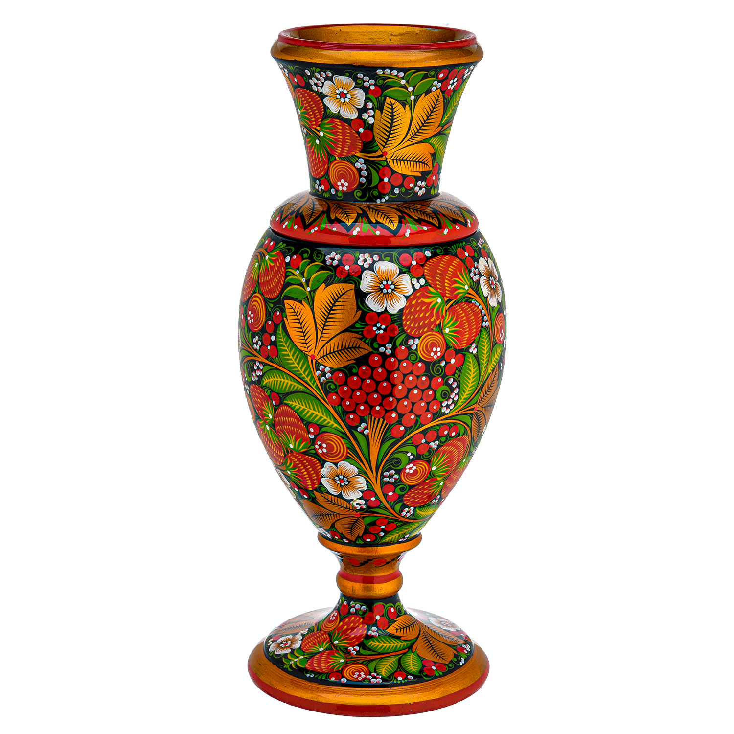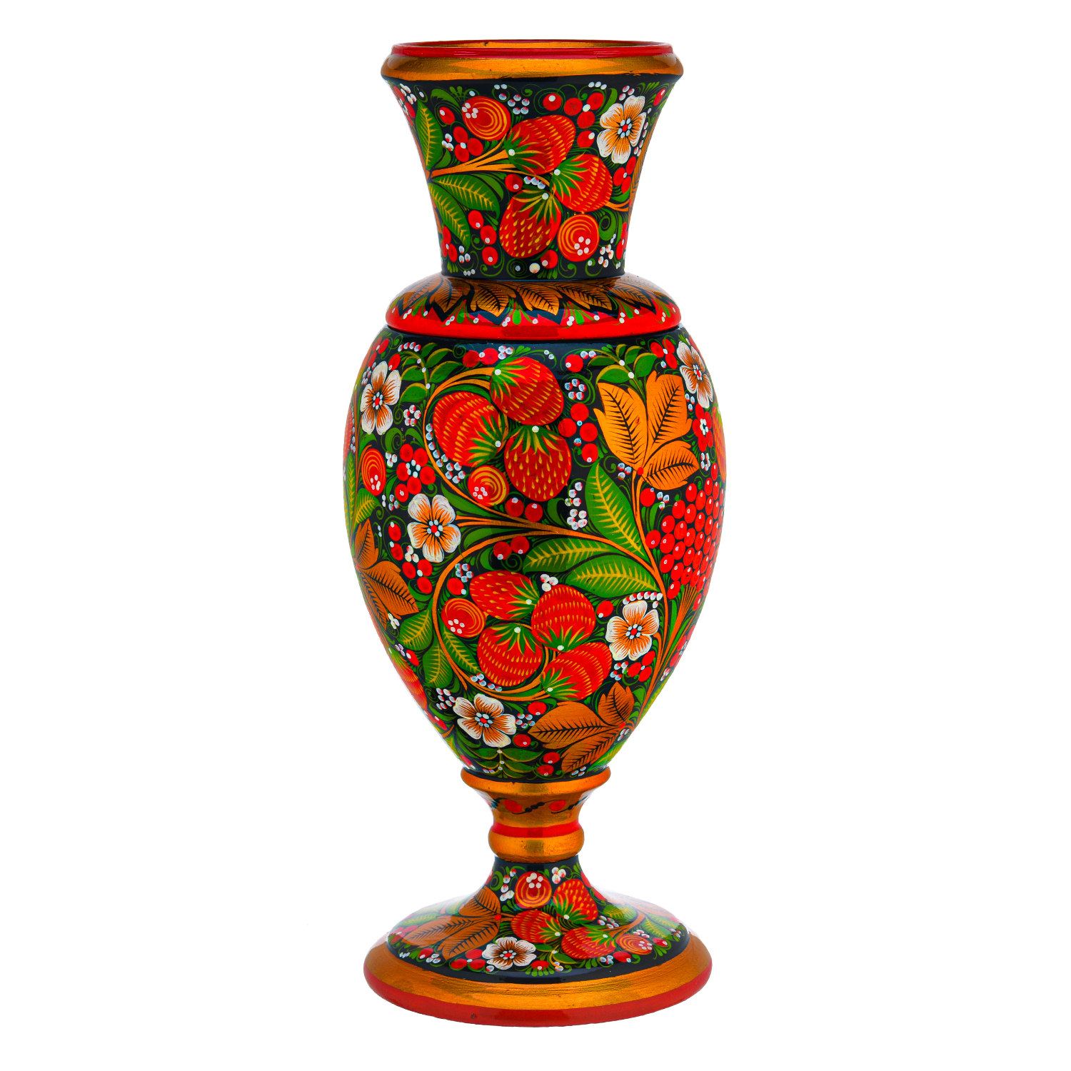 Ваза для цветов "Клубника". Хохлома.Материалы: дерево, краски, лак.