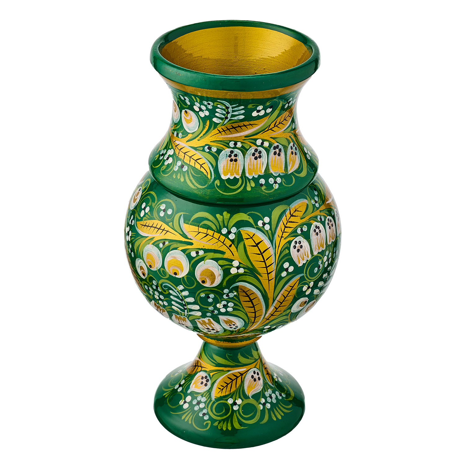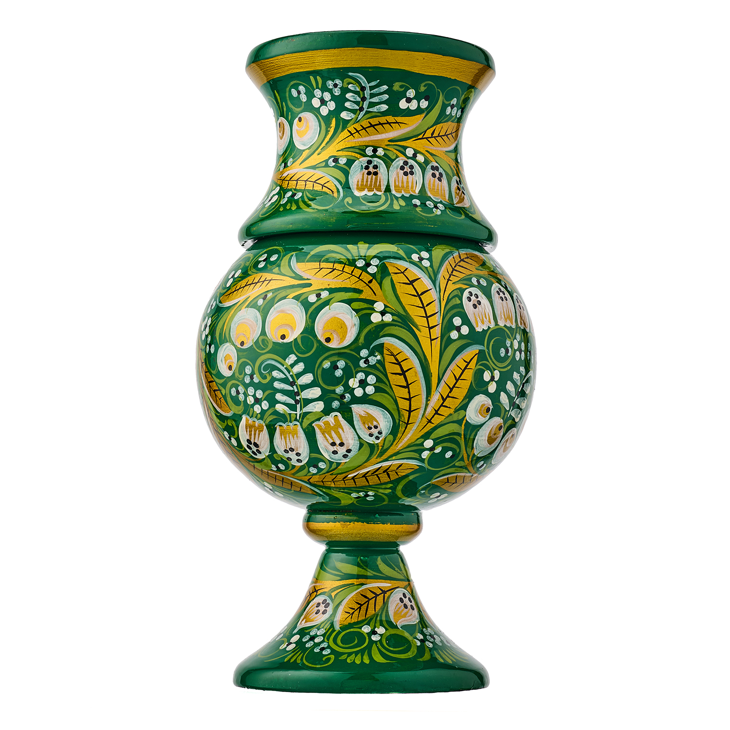 Ваза-кубок деревянная с росписью "Ландыш". Хохлома