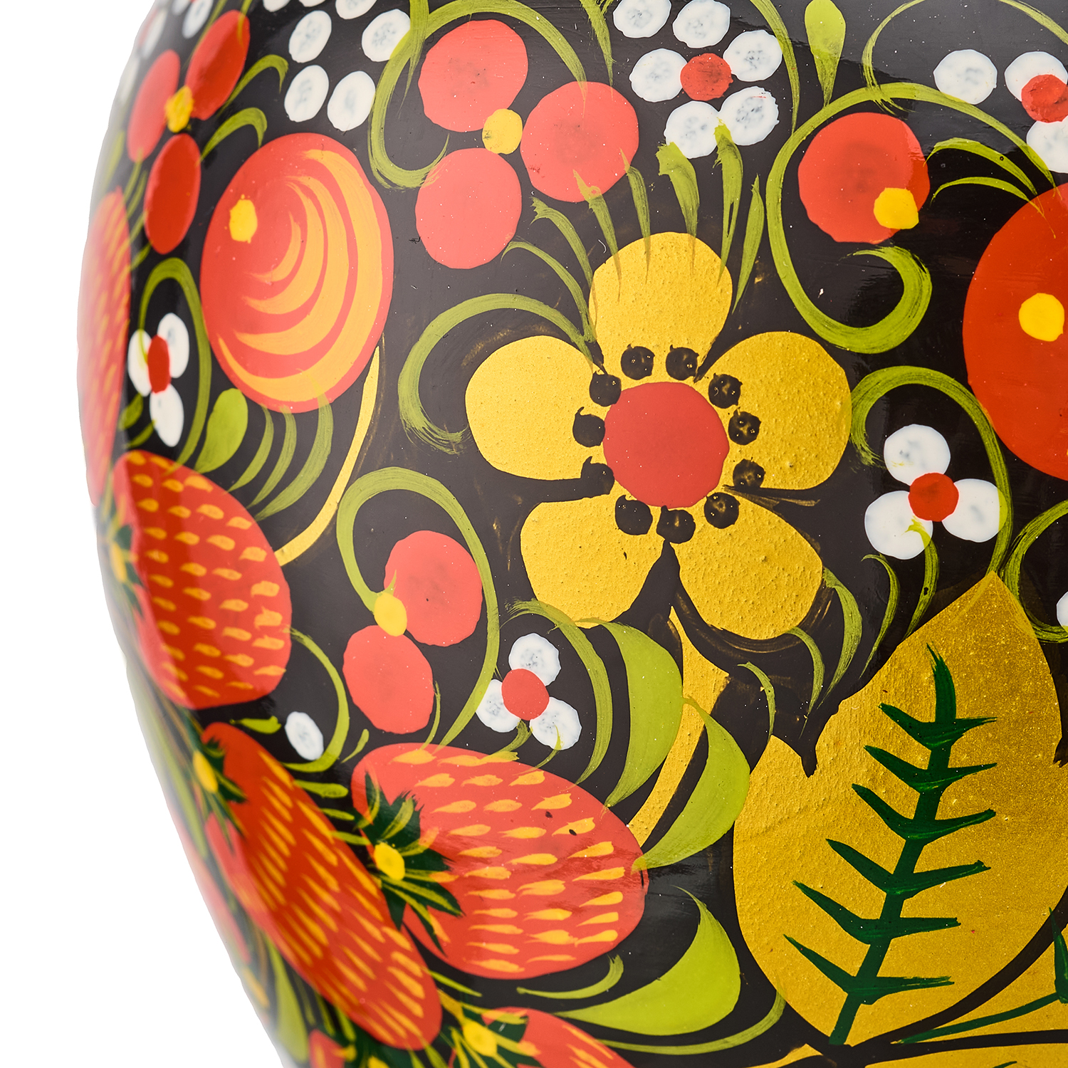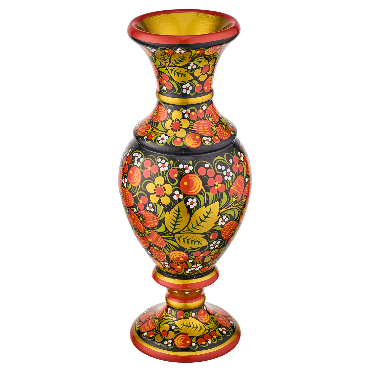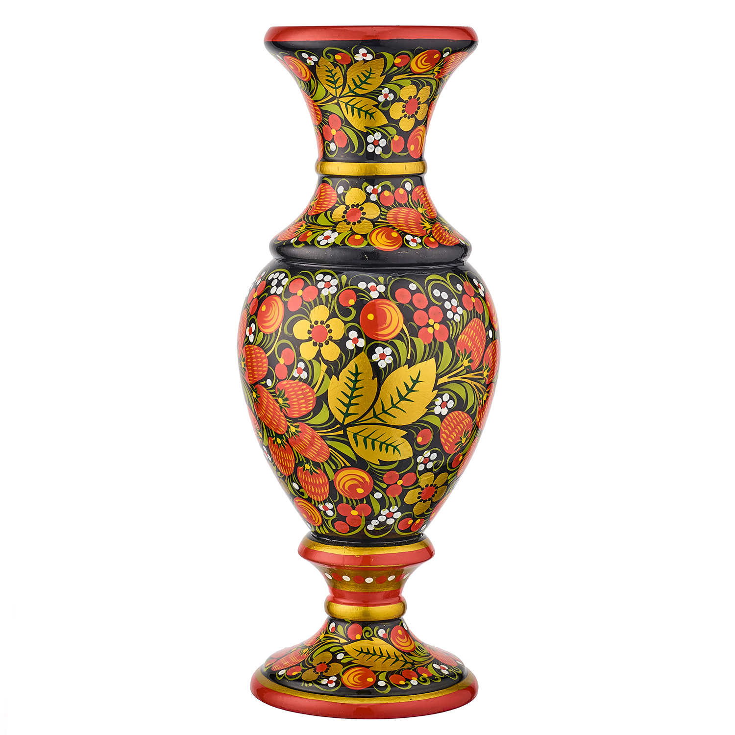 Ваза деревянная с росписью "Клубника". Хохлома