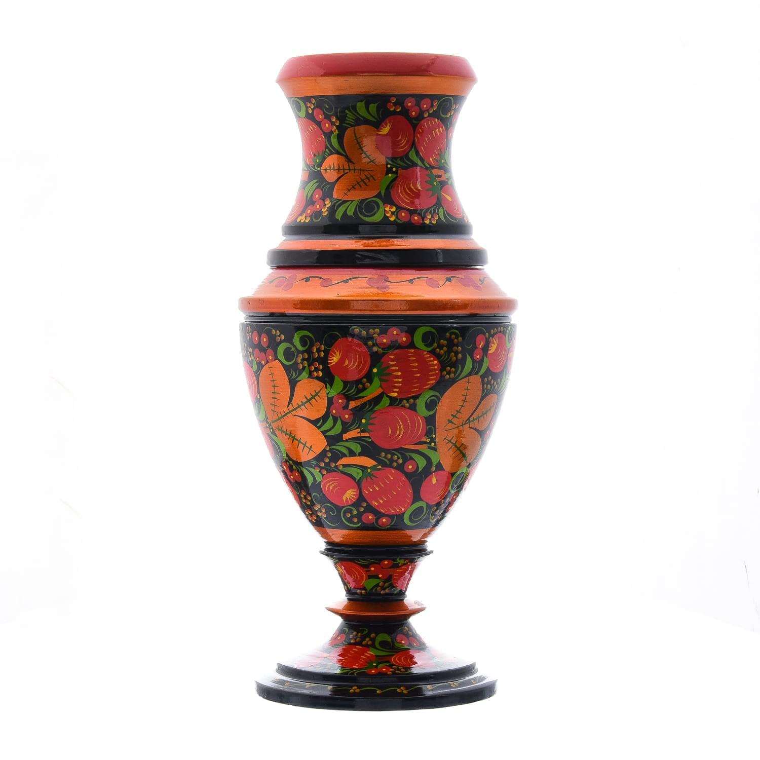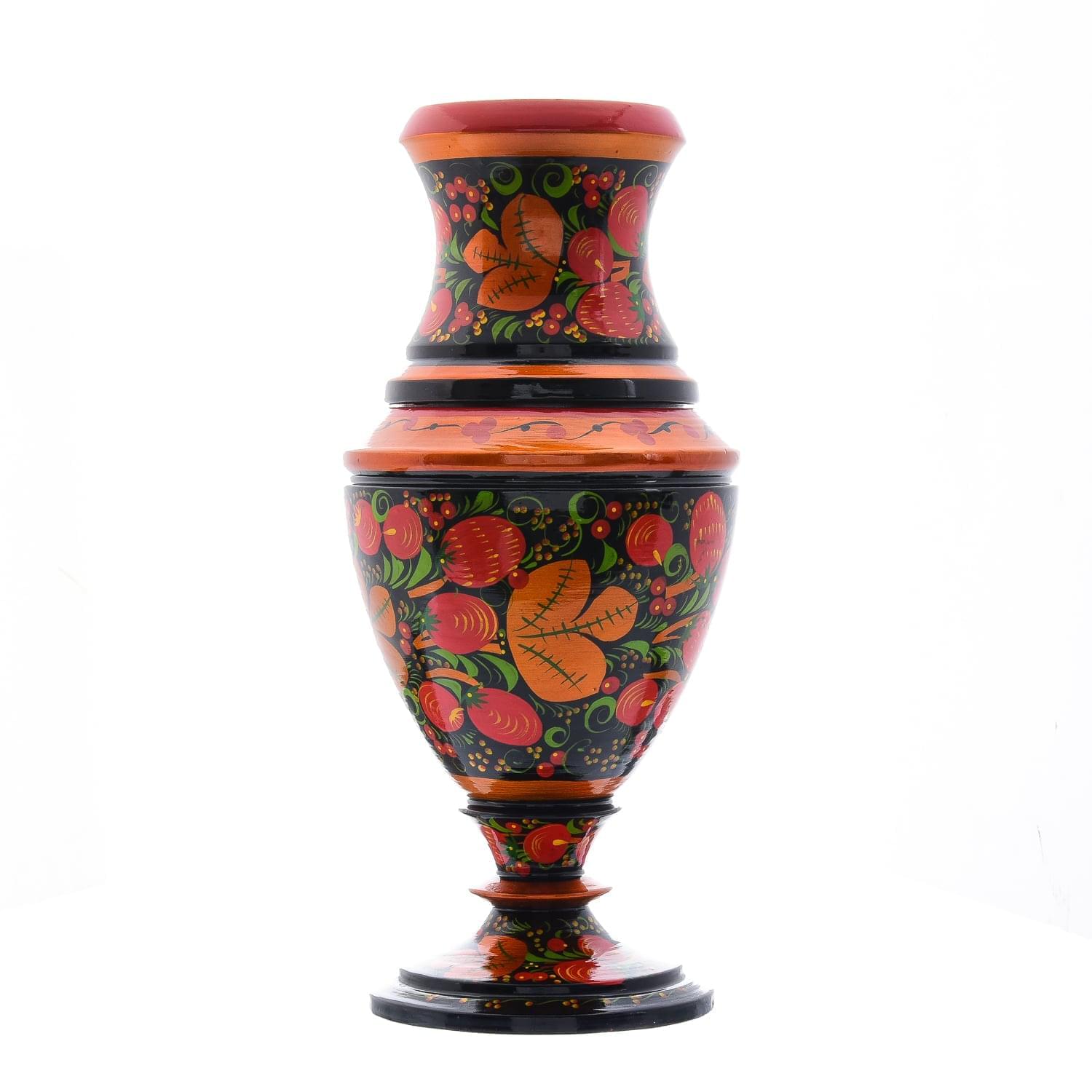 Деревянная ваза с хохломской росписью "Клубника"