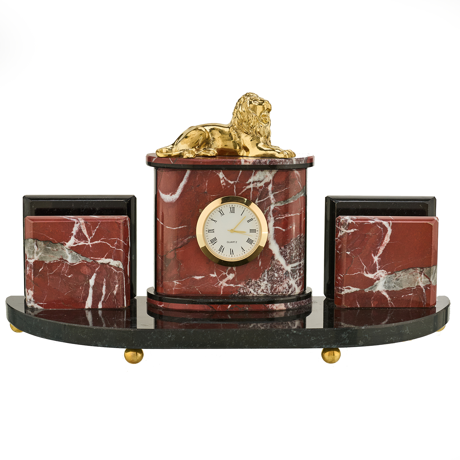 Визитница настольная с часами "Лев".Материалы: натуральный камень, бронза, золочение.