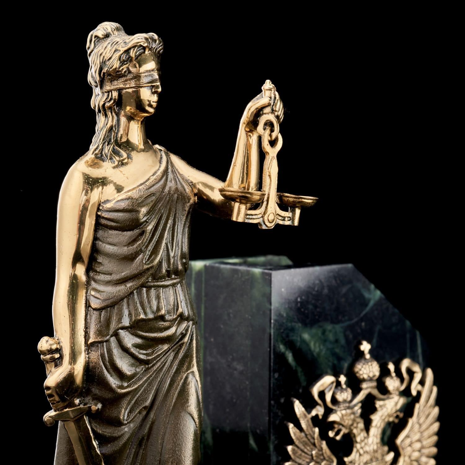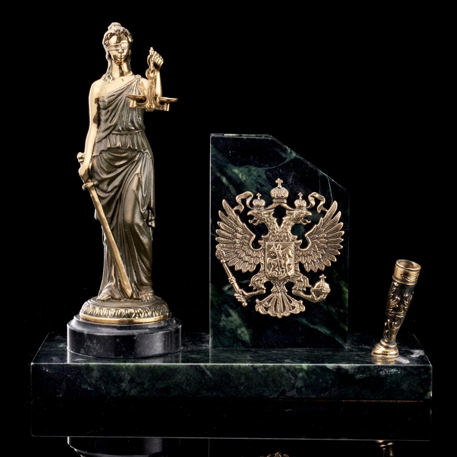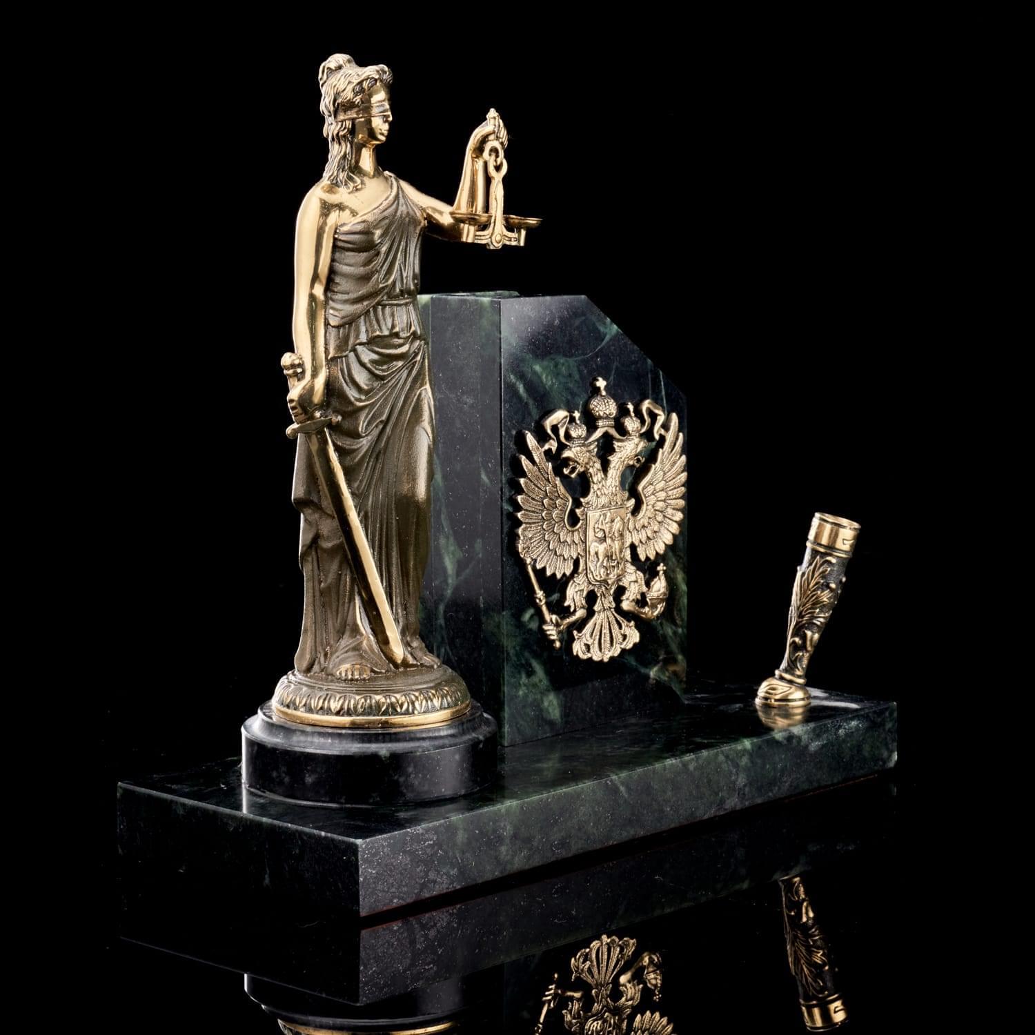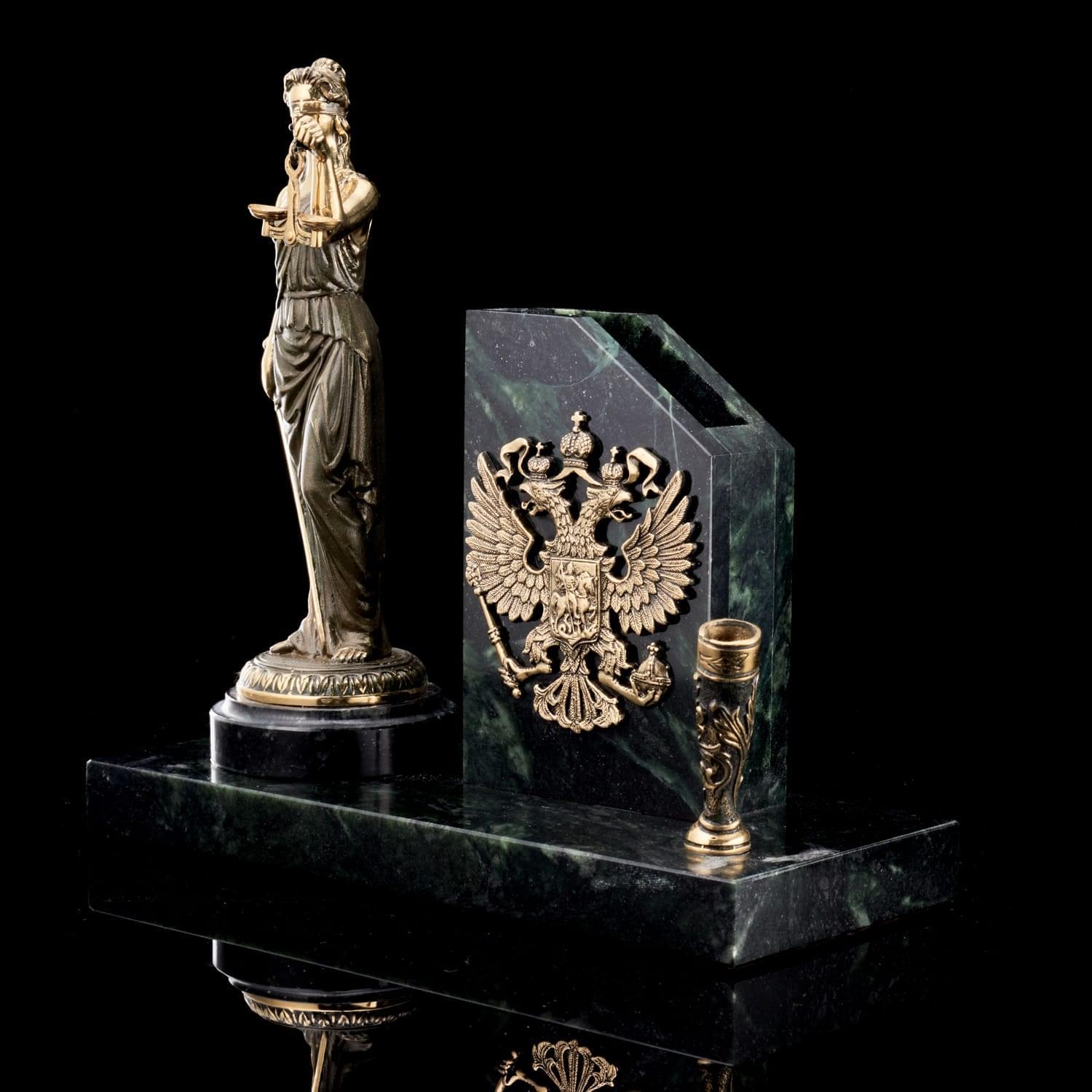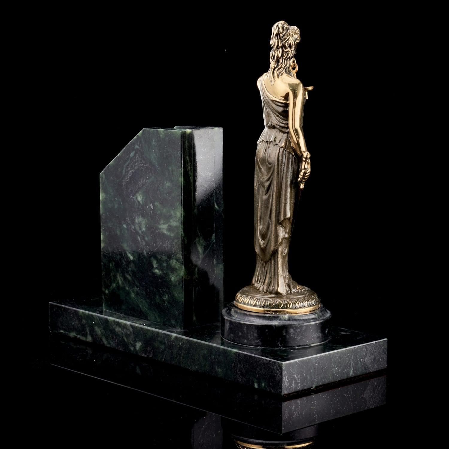 Настольная визитница из бронзы "Фемида" с подставкой для ручки