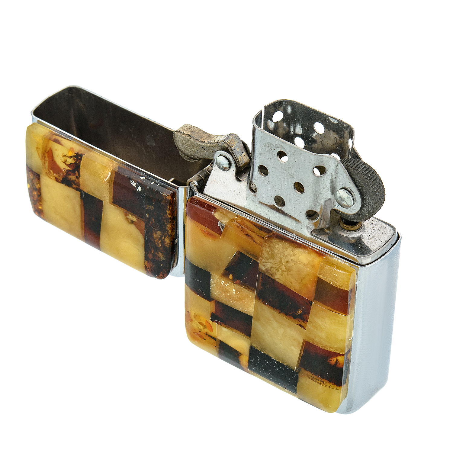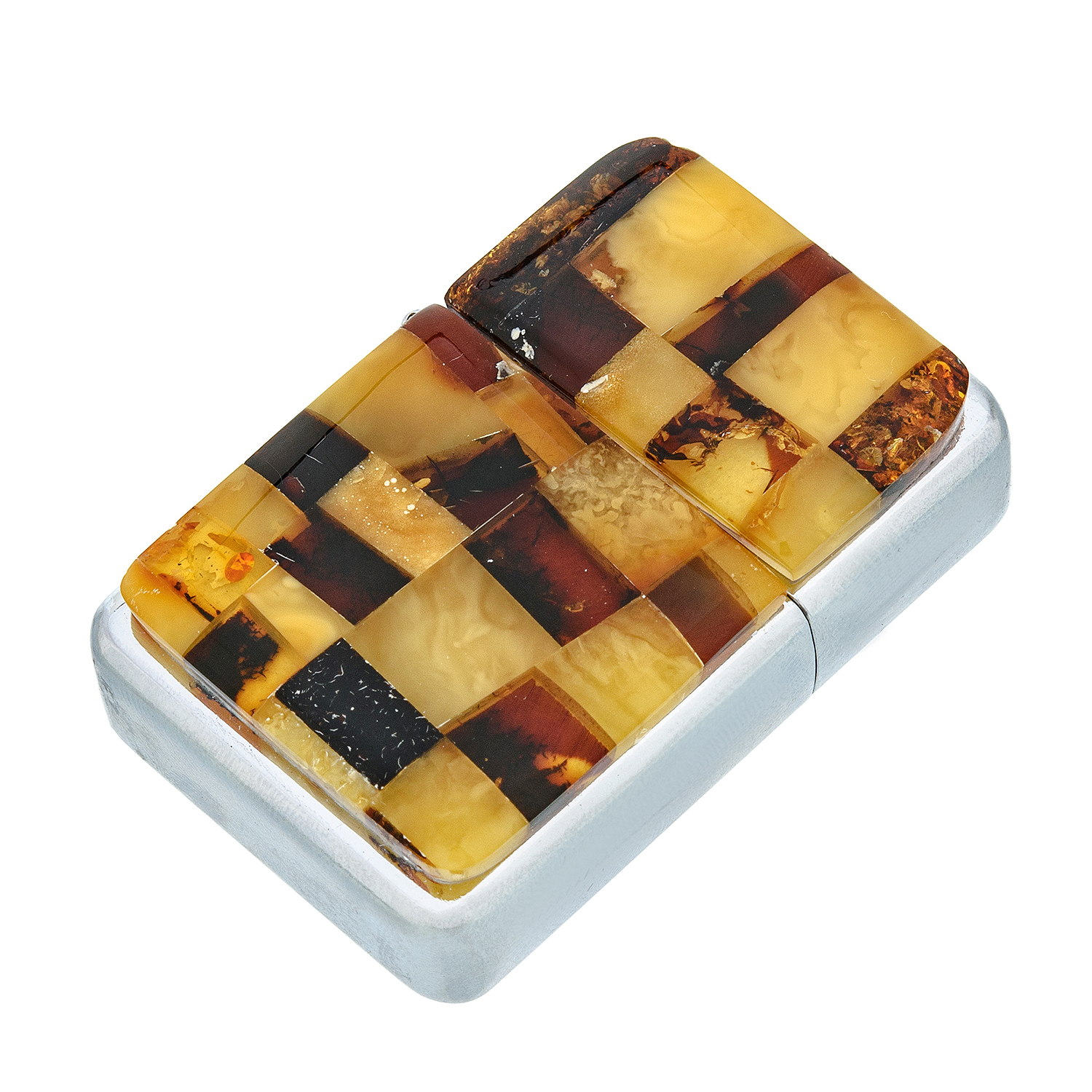 Зажигалка бензиновая с янтарной вставкой