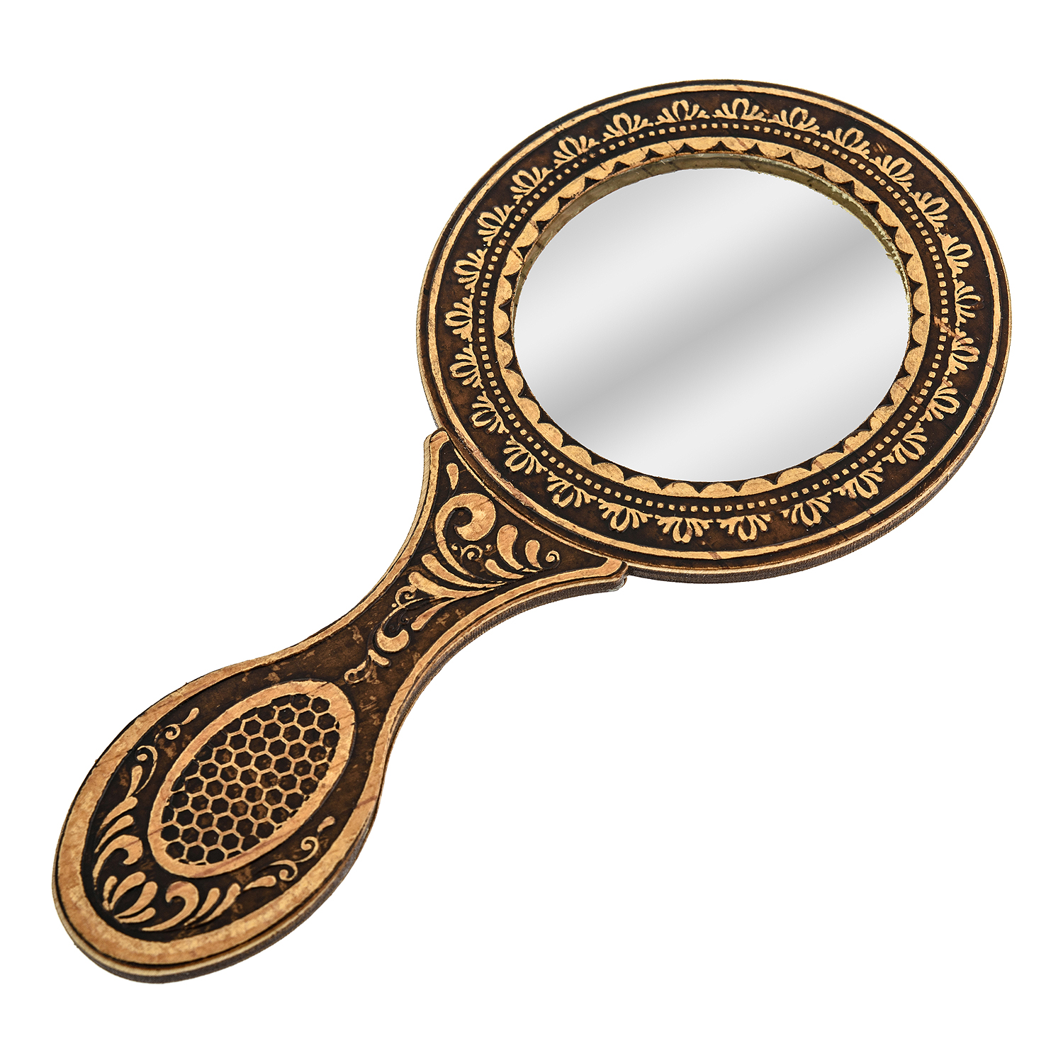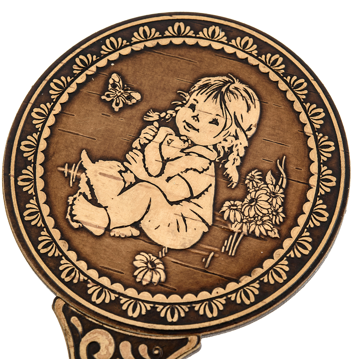 Зеркало с ручкой в оправе из бересты "Дружба"